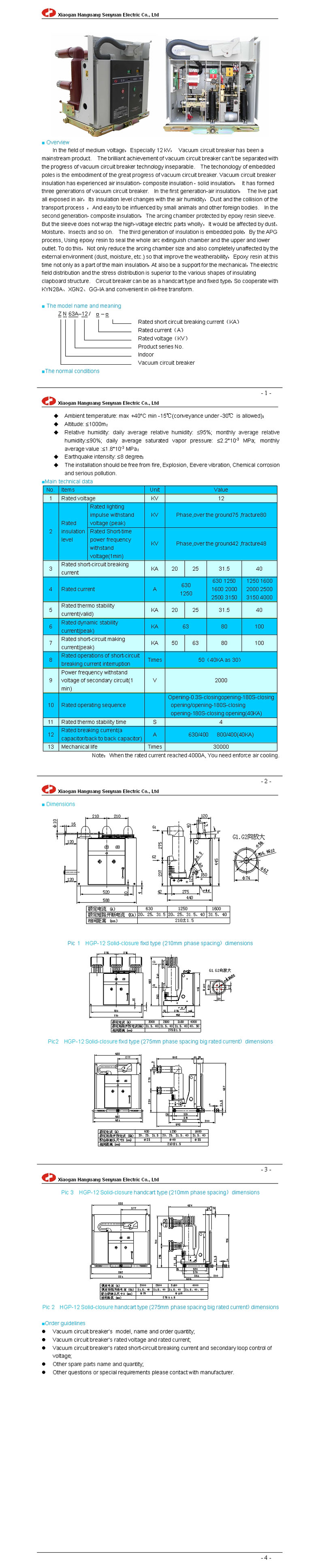 | HGP(ZN63A-12) indoor high voltage vacuum circuit breaker (Solid-closure structure) | |